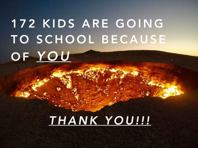 I signed up for #MongolRally2017 for no reason. It was literally: “hey, this looks interesting. Why not?”. I didn’t have an agenda or a bucket list. The rally rules stated that we had to raise at least £1000 for charity, and I thought “well, let’s aim for the stars and see where we land”. Accordingly, we put out an outrageous appeal for $48k: sponsor the education of 200 kids for 1 year. Kids who are working in farms and factories. Kids who don’t have opportunities. I didn’t think we’d raise more than $3000.